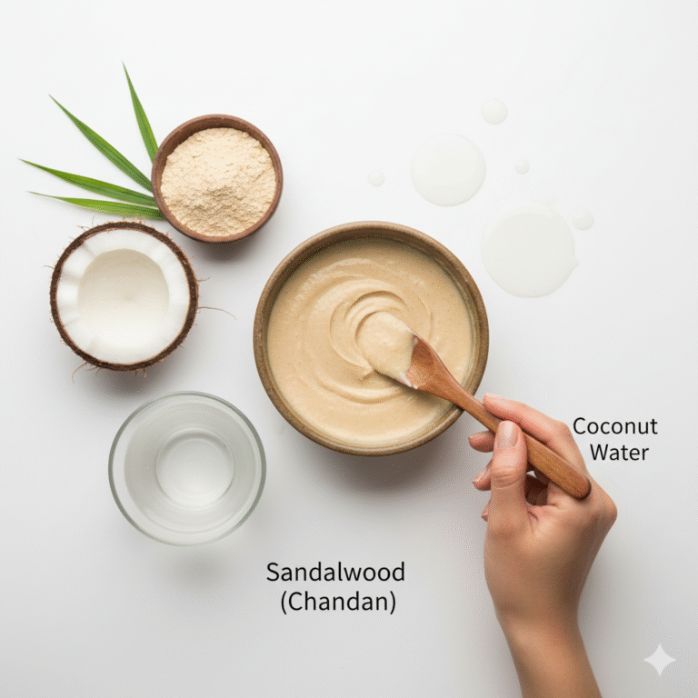 Mix together 1 tbsp Sandalwood Powder with enough Coconut Water to form a smooth paste.